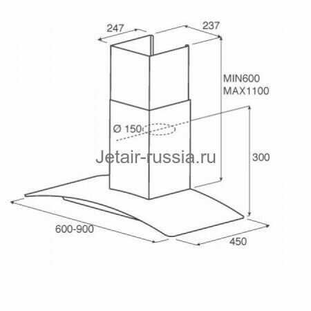 СохранитьВытяжка JETAIR каминная Tory P 90 INX нержавеющая сталь управление: кнопочное (1 мотор) интересное: