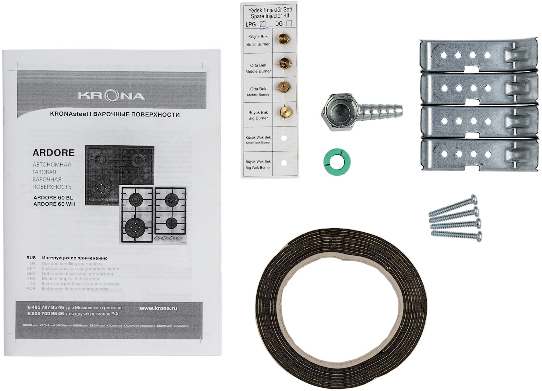 Поверхность газовая KRONA ARDORE 60 BL черный (стекло)