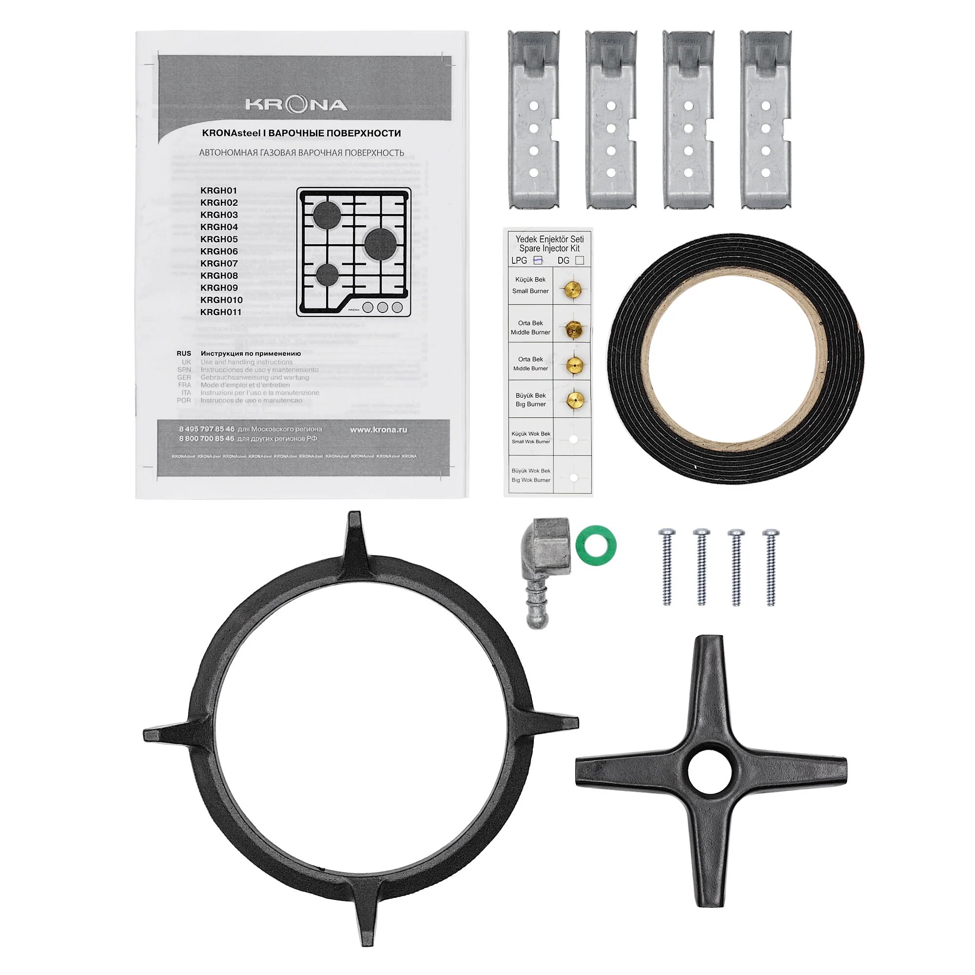 Поверхность газовая KRONA CORNIOLA 60 WH белый (стекло, чугун, г/к, WOK)