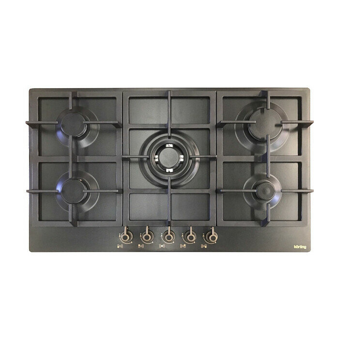 Встраиваемые газовые панели Korting/ Газ, Газовая варочная панель 90 см в ретро-дизайне,5 высокоэффективных конфорок, WOK- сверхмощная конфорка, автоматический электроподжиг, газ-контроль каждой конфорки, передние переключатели, чугунные решетки, чугунный