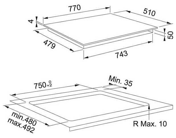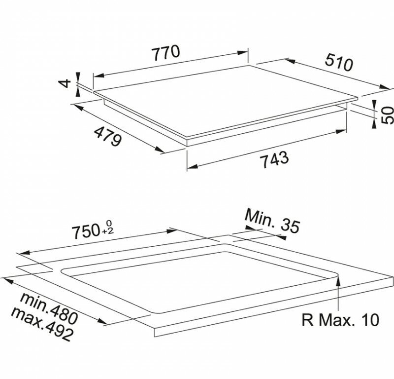 Better, Индукционная варочная поверхность, серия SMART, 80см, 4 зоны нагрева, индукционный мост FLEXI, сенсорное управление, 9 ступеней мощности, прямые края, установка сверху или вровень со столешницей, черная