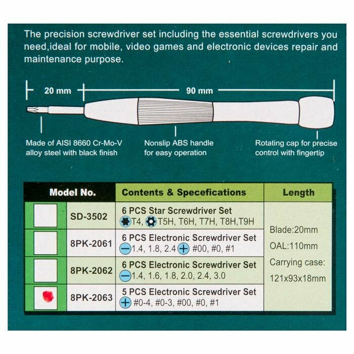 Screwdriver Set / Набор отверток прецизионных (5шт.) ProsKit 8PK-2063
