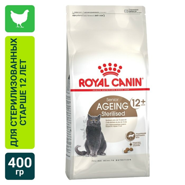 Корм Royal Canin Эйджинг Стерилайзд 12+, 0,4кг, сухой корм для стерилизованных кошек и кастратов старше 12 лет