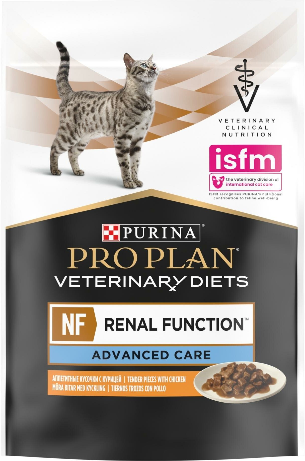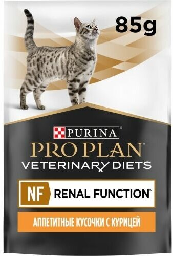 Pro Plan Veterinary Diets NF Renal Function Advanced Care влажный корм для кошек для поддержания функции почек на поздней стадии хронической почечной недостаточности с курицей, в паучах - 85 г х 10 шт