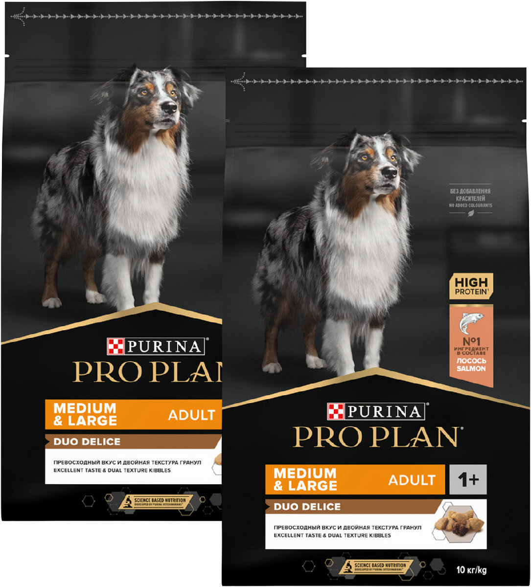 PRO PLAN DUO DELICE MEDIUM & LARGE ADULT для взрослых собак средних и крупных пород с лососем (10 + 10 кг) интересное: