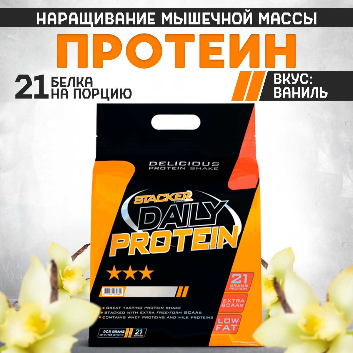Купить Протеин Daily Protein с BCAA и глютамином Stacker2 ваниль, 908 гр.