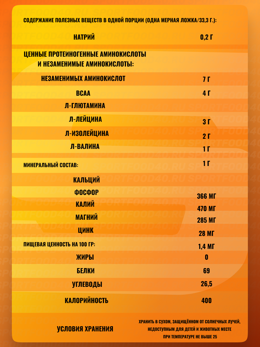 | Состав | протеиновая матрица (молочный протеин, концентрат сывороточного белка, концентрат молочного белка, изолят сывороточного белка, аминокислоты ВСАА в свободной форме), усилитель вкуса (глицин), ароматизатор, загуститель (пшеничная мука, ксантановая камедь, гуаровая камедь), натуральный краситель, подсластители (сукралоза, ацесульфам-к), эмульгатор (подсолнечное масло, соевый лецитин) |