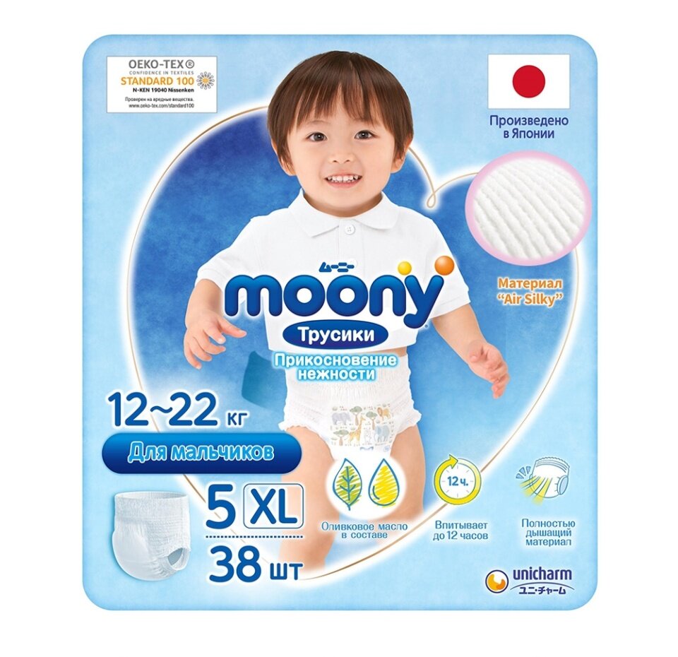 Купить Подгузники-трусики Moony XL Boy 12-22кг 38шт Япония