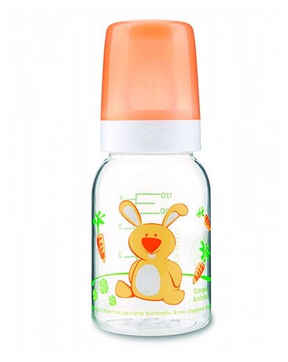 Купить Canpol Babies Бутылочка тритановая 120 мл Забавные животные, с 3 месяцев, оранжевый/заяц