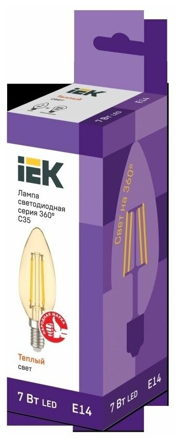 Лампа LED C35 золото 7Вт 230В 2700К E14 серия 360° IEK LLF-C35-7-230-30-E14-CLG (1 шт.)