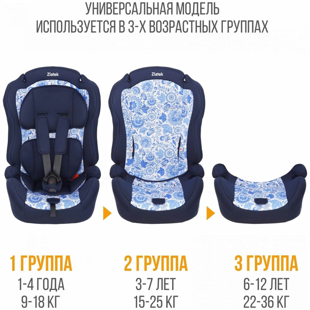 Автокресло детское Zlatek ZL513 Lux, цвет вариор, удерживающее устройство, бустер , группа 1-2-3, 9-36 кг, 1-12 лет.