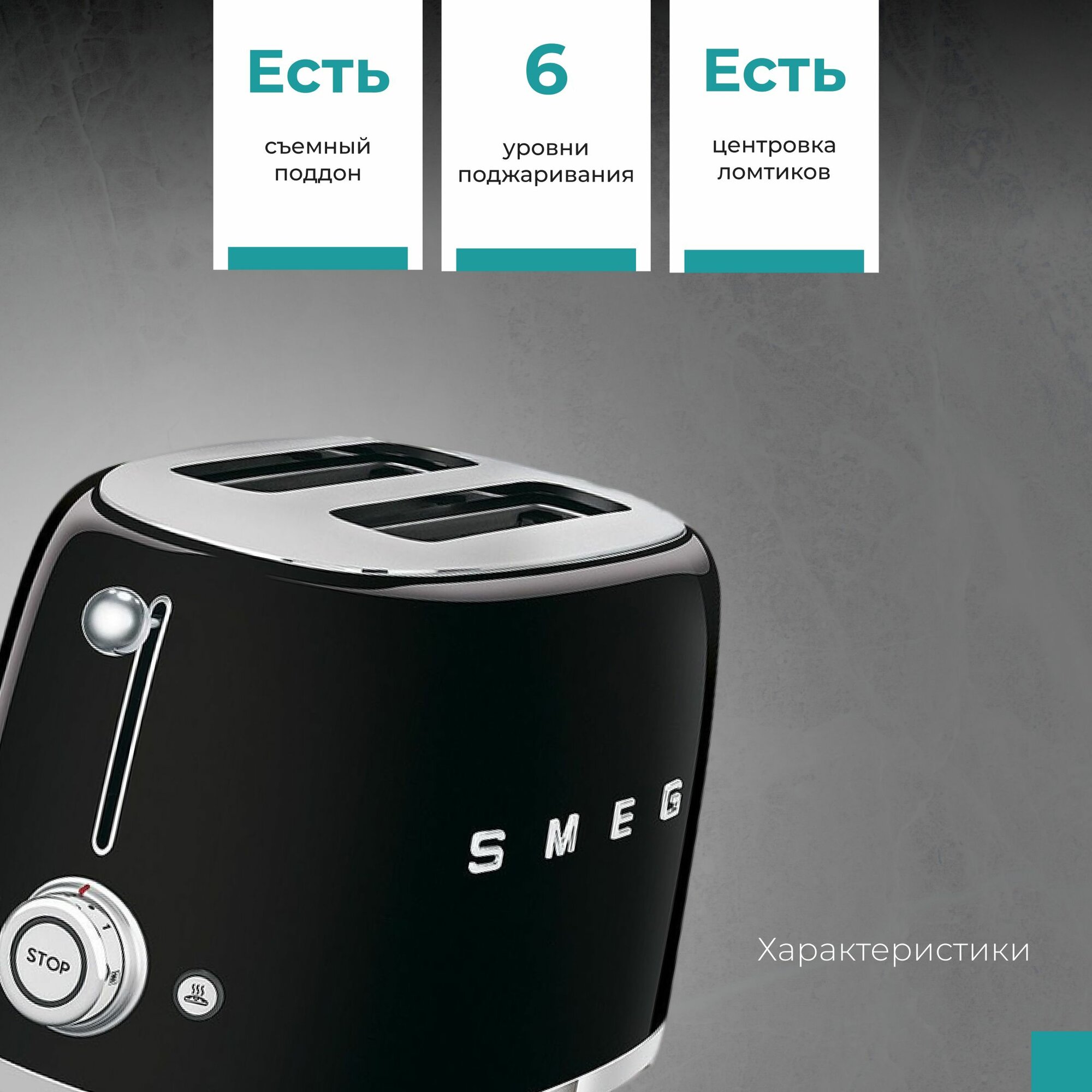 Тостер SMEG TSF01BLMEU / мощность 950 Вт / на 2 ломтика / матовый черный