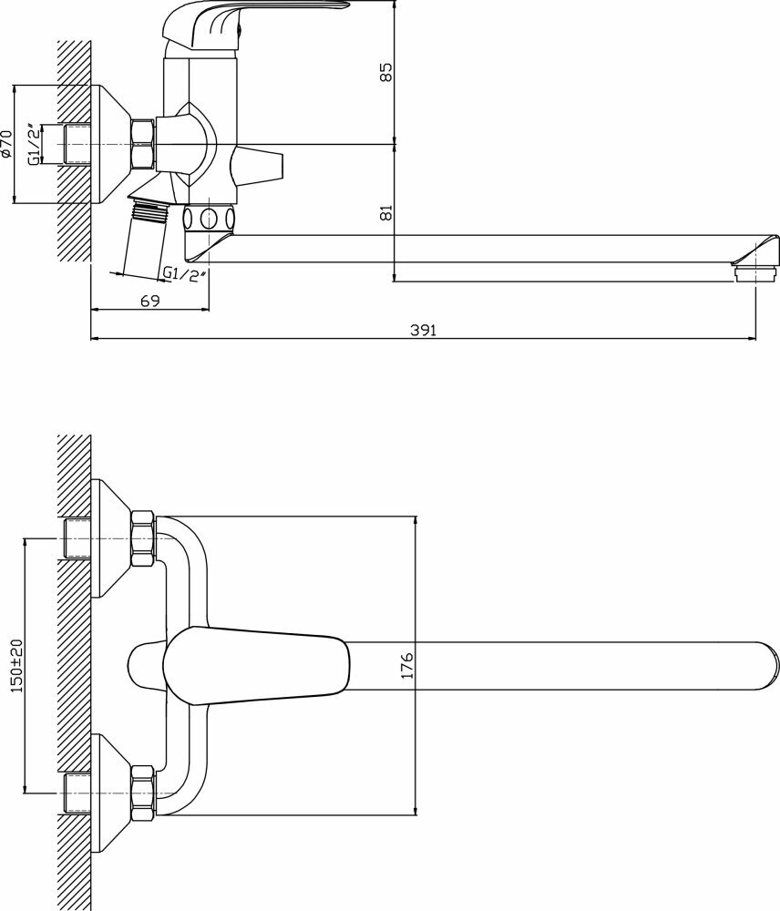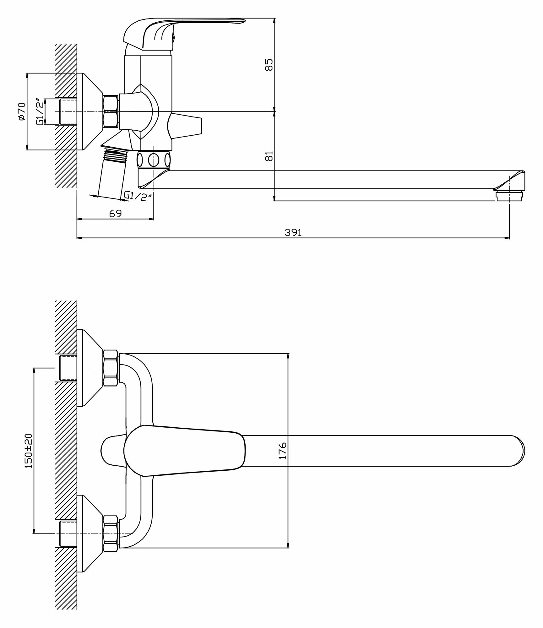 Смеситель для ванны Orange Iris M41-211cr универсальный Хром на стену