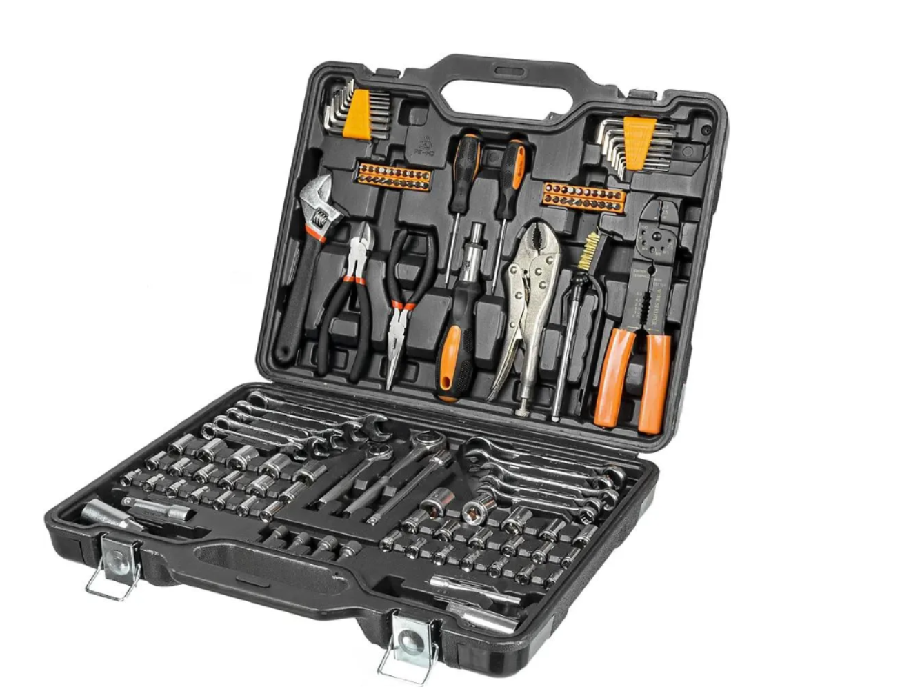 | Отзыв: | Набор понравился своей комплектацией. Практически всё нужное для авто или для мелких работ по дому. Уложен инструмент в кейс с крепкими замками. Каждая единица в своём гнезде, сидит плотно, при переноске не дребезжит. В багажнике места много не занимает. Качество комплектующих разное. Трещотки и биты, сразу скажем, одноразовые. Шестигранники тоже недолго служат. Бокорезы и тонкогубцы отличные, с удобными рукоятками. Гаечные и свечные ключи отличные, чёткий размер, не проскальзывают. Разводной ключ неплохой, но нуждается в смазке. В целом работать с инструментом можно. |