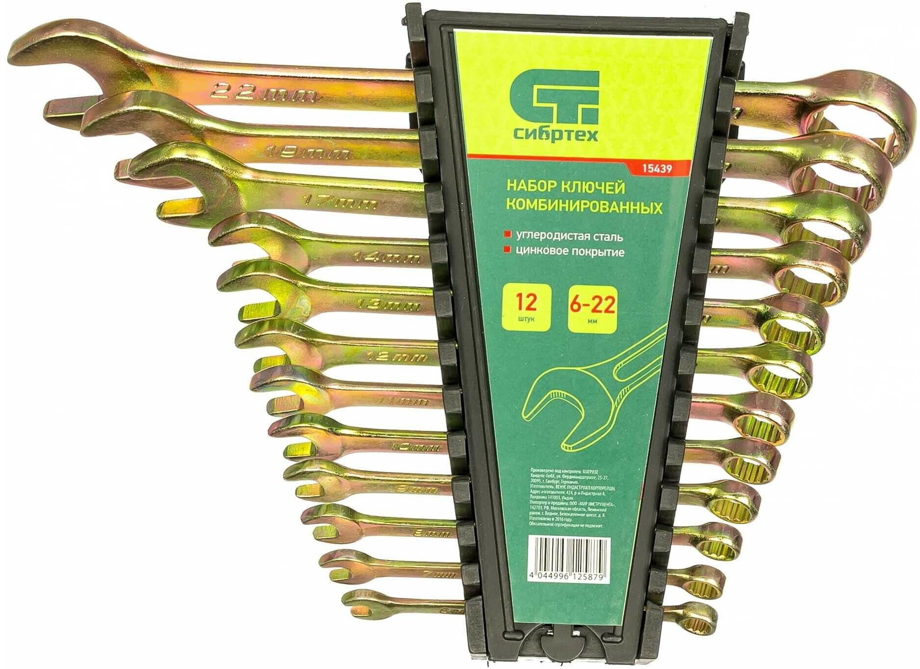 Набор ключей комбинированных, 6-22 мм, 12 шт сибртех 15439 сибртех 15439
