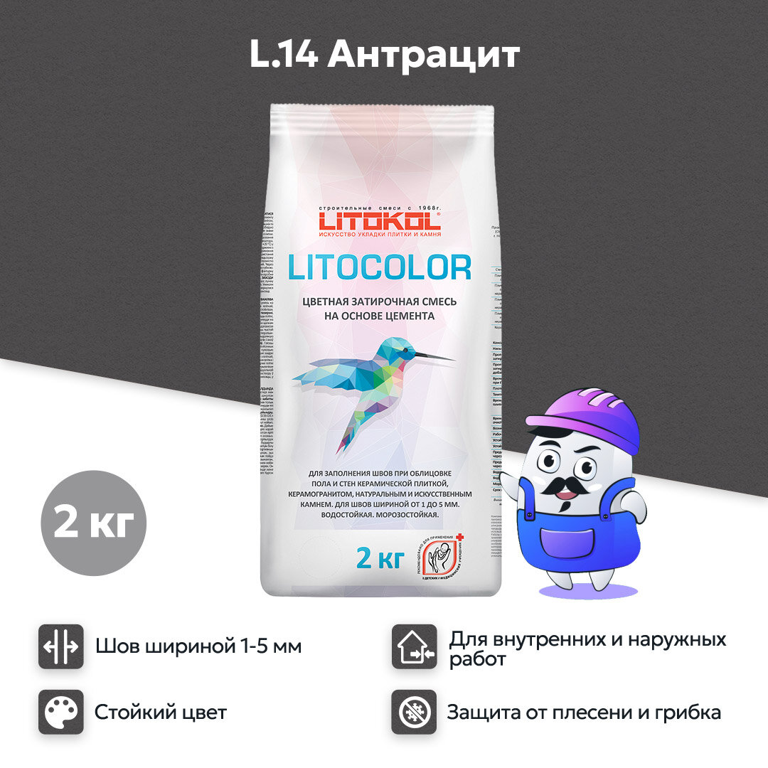 Купить Цементная затирка LITOKOL LITOCOLOR L.14 антрацит 2 кг