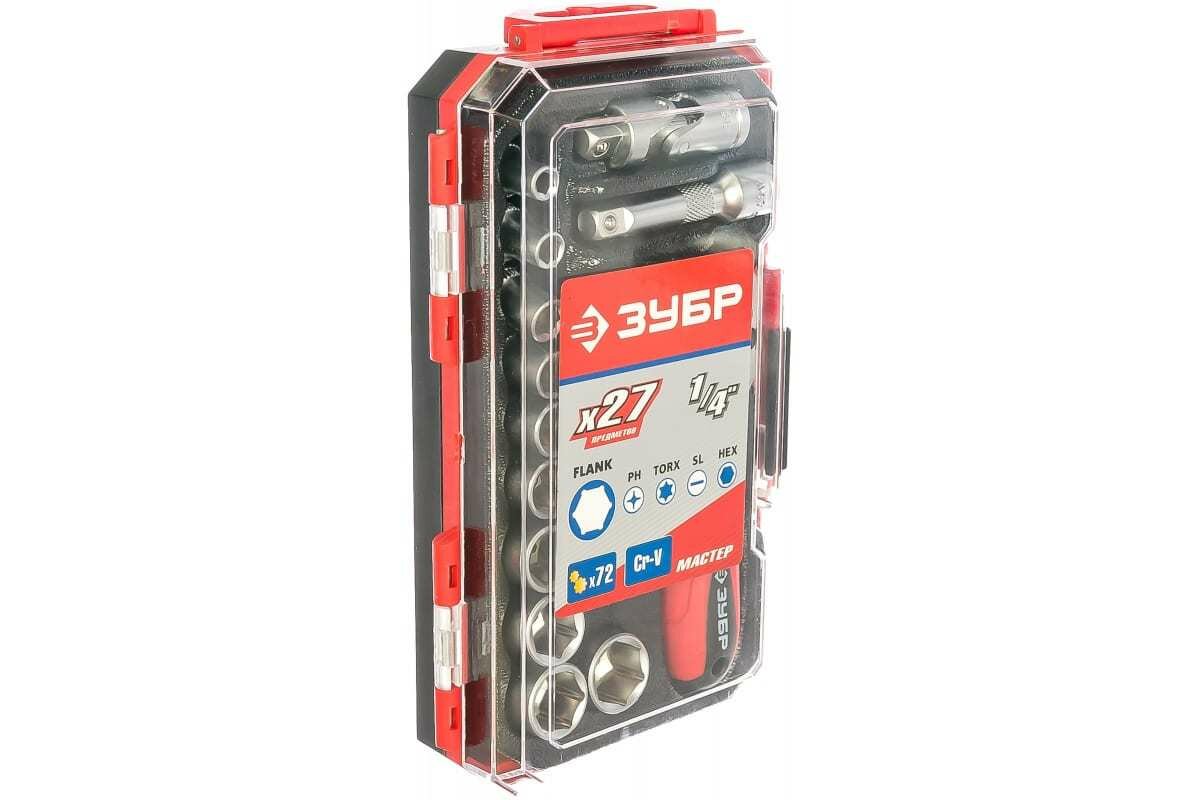 Набор торцовых головок ЗУБР мастер 1/4 27 предметов