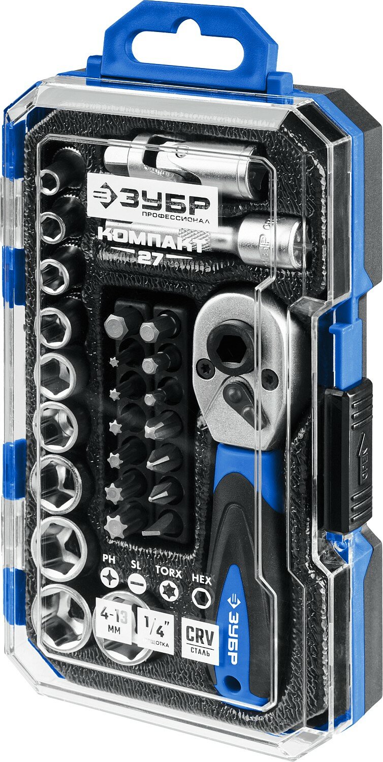 Универсальный набор инструмента ЗУБР Компакт-27 27 предм. (1/4) 27642-H27