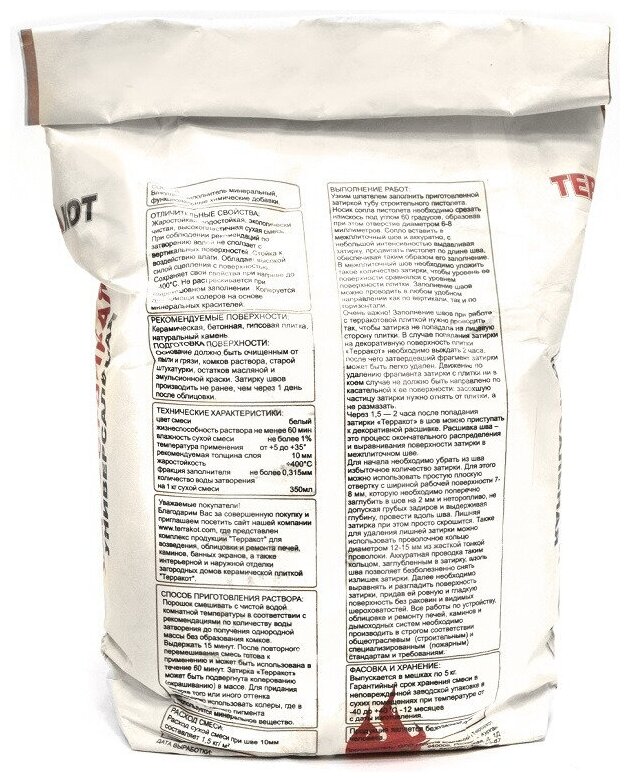 Затирка терракот жаростойкая 5 кг белая
