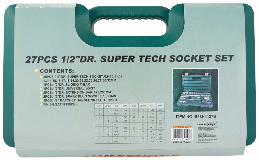 Набор головок торцевых 1/2"DR Super Tech, 27 предметов, S68H4127S, Jonnesway