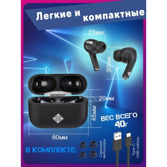Наушники Telefunken TF-1102B, беспроводные, вакуумные, микрофон, BT5.0, 50/350 мАч, черные интересное: