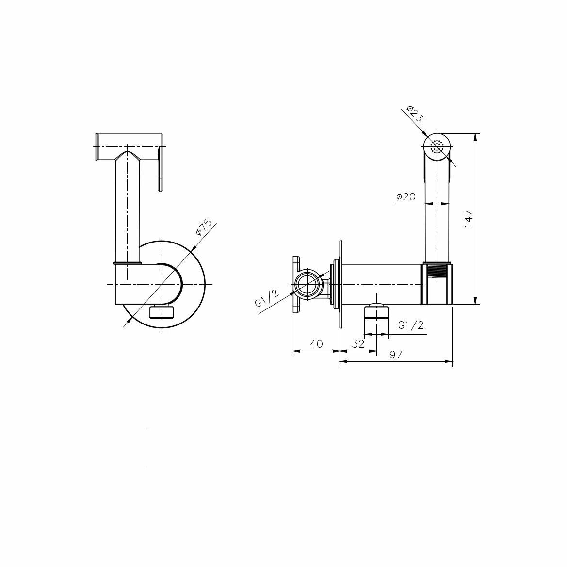 Rush Гигиенический душ Rush Capri CA1435-97 со смесителем, С внутренней частью