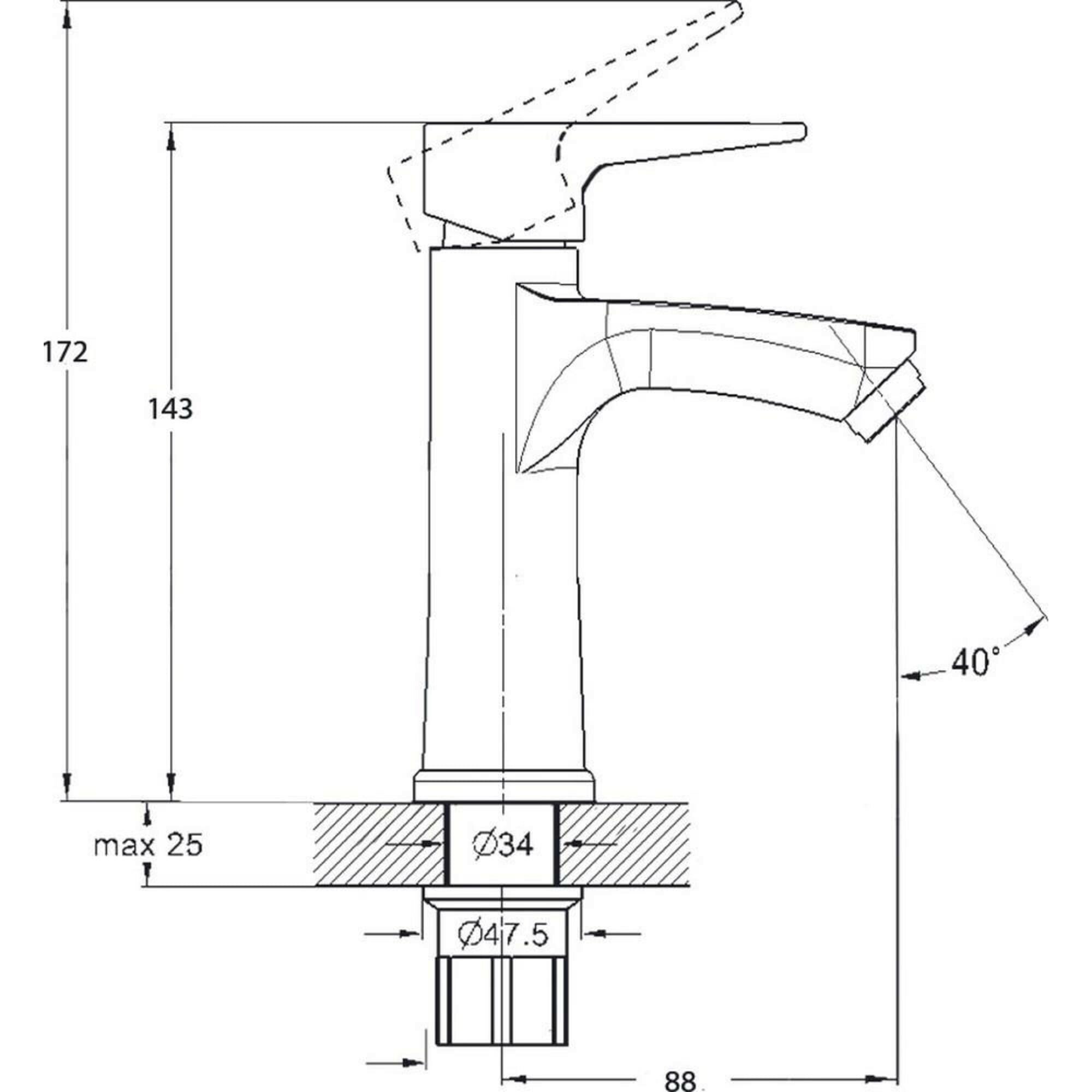 Смеситель для раковины SOLONE FAB1-A020 кер. картридж ⌀25, крепление на гайке-втулке, хром