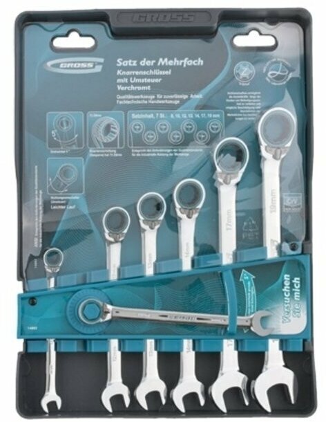 Ключи комбинированные Gross, с трещоткой, реверсивные, 8 - 19 мм, набор 7 шт