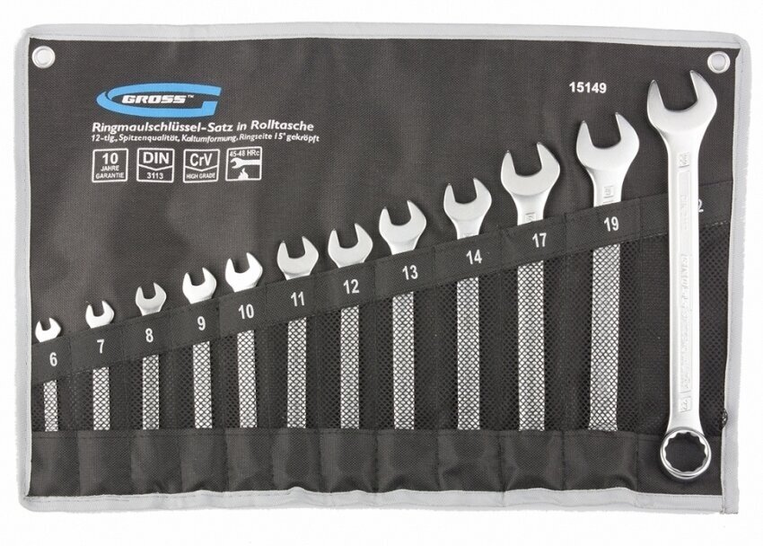 Набор комбинированных ключей Gross 15149 (6-22мм) 12 шт CrV холодный штамп 15149 .