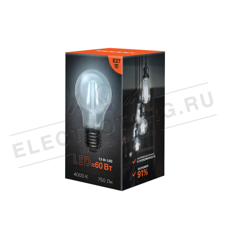 Лампочка филаментная REXANT Груша A60 7.5 Вт 750 Лм 4000K E27 прозрачная колба интересное:
