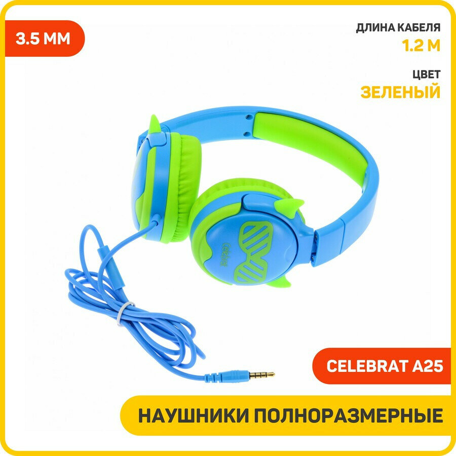 Наушники полноразмерные Celebrat A25 (3.5 мм) зеленый