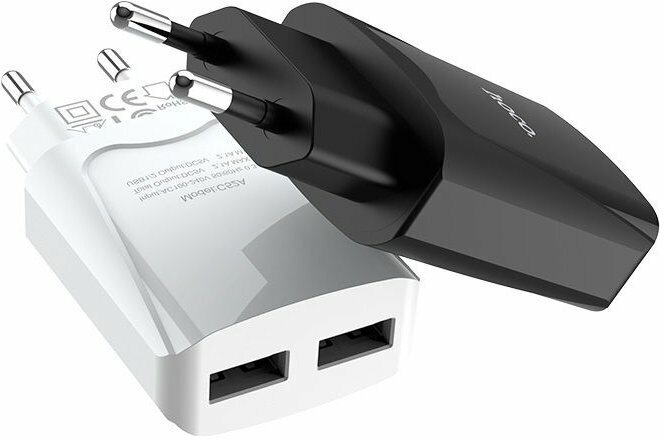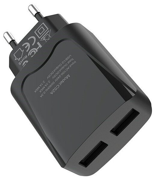 Сетевое зарядное устройство черного цвета на 2USB HOCO C52A, 2,1A