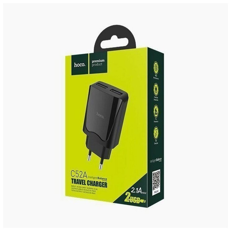 Сетевое зарядное устройство (СЗУ) Hoco C52A (2 USB) 2.1 А, черный