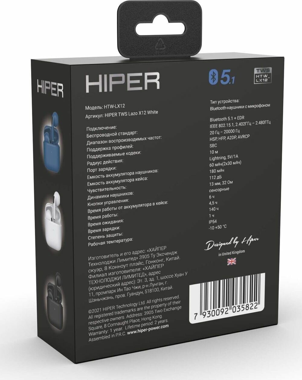 Беспроводные наушники HIPER TWS Lazo X12 White (HTW-LX12) Bluetooth 5.3 гарнитура, Белый интересное: