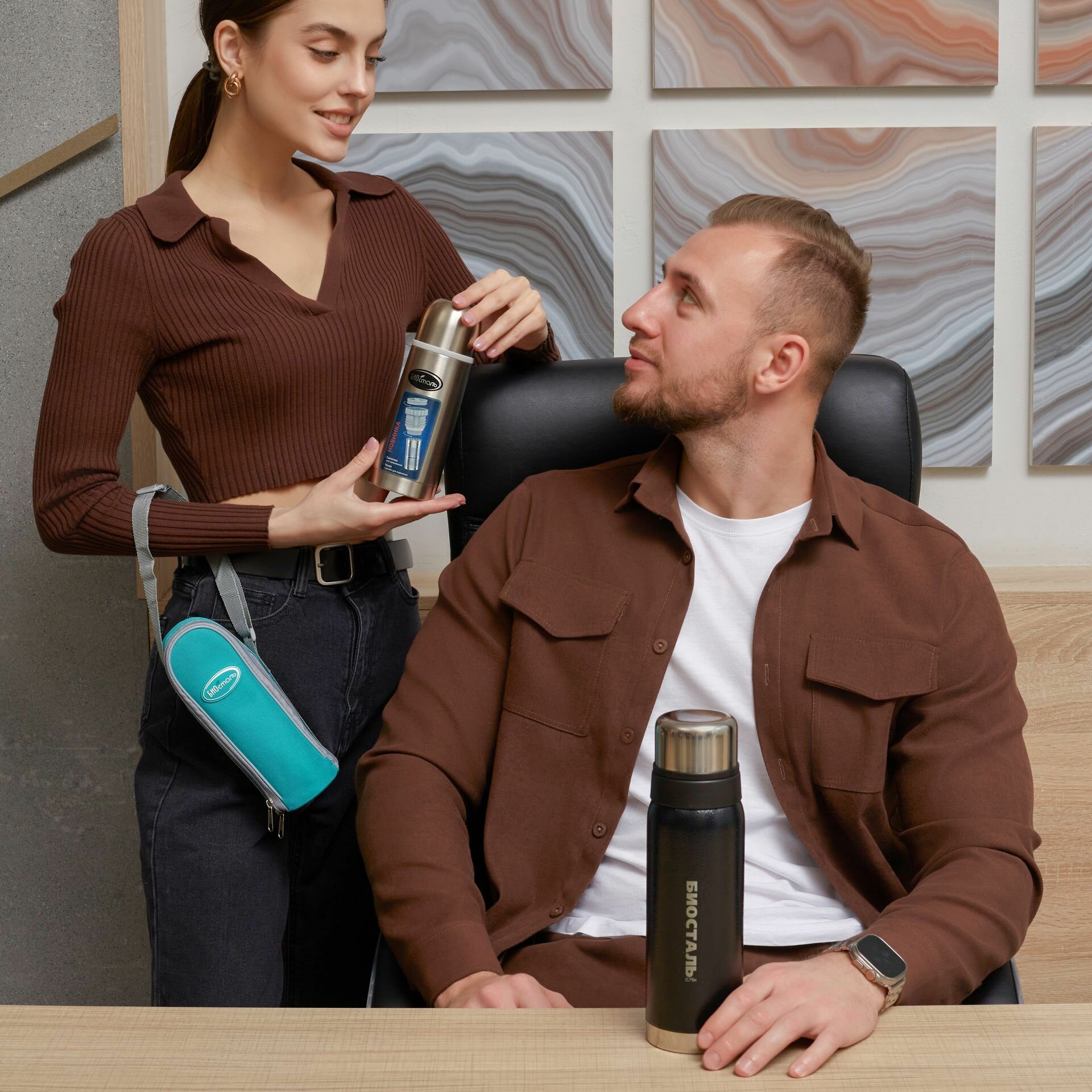 Термос Biostal (0,75 литра), с ситечком и чехлом, стальной