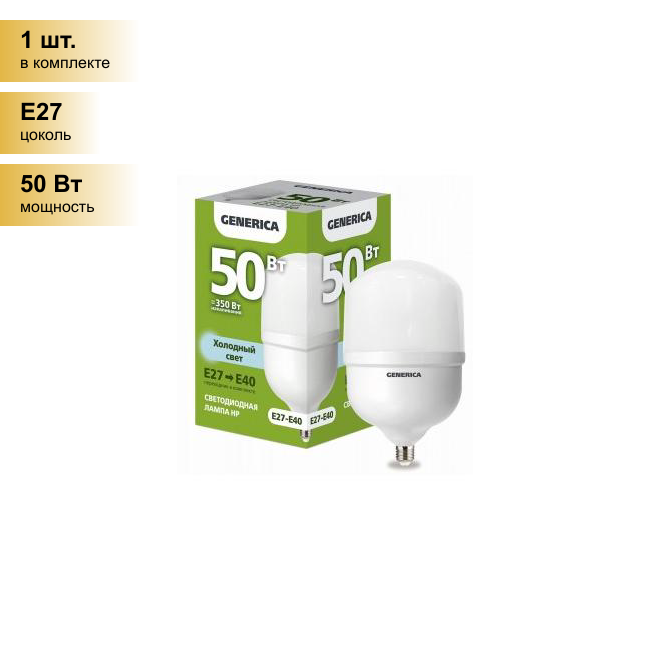 Лампа светодиодная Generica HP-50, E40/E27, HP, 50 Вт, 6500 К