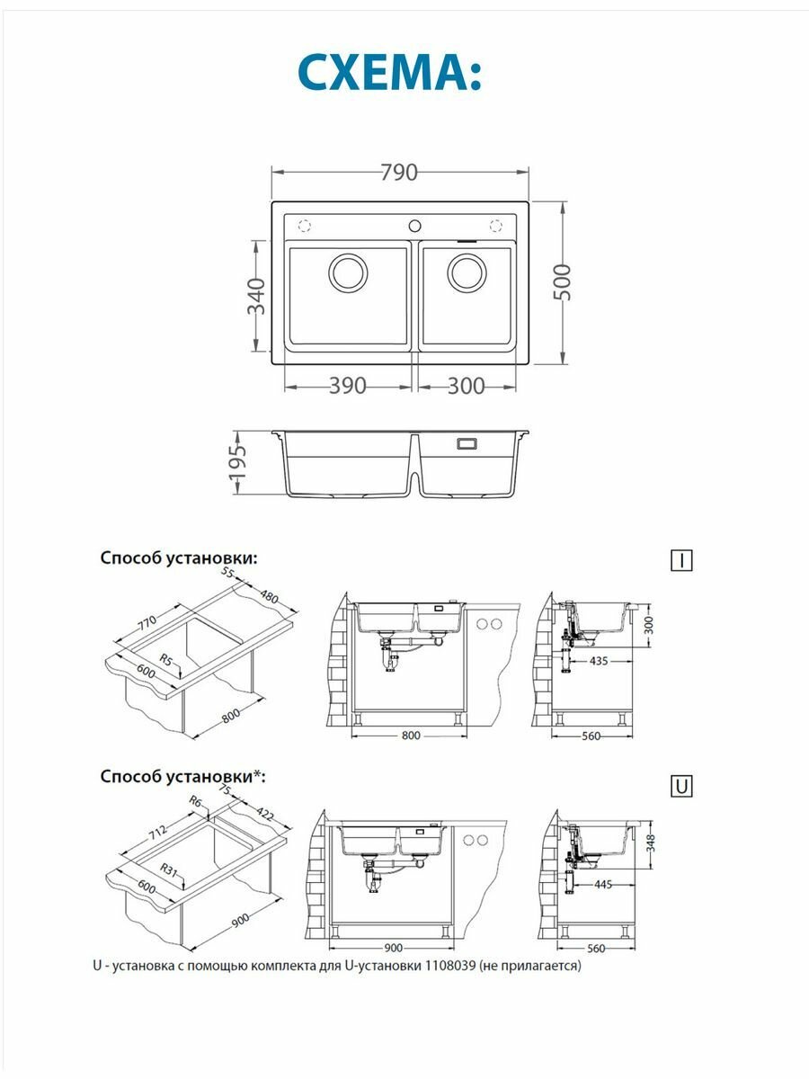| Дополнительная информация | размер дополнительной чаши 30x34x14 см; монтаж врезной I (ширина шкафа 80 см) или под столешницу U (ширина шкафа 90 см); перелив в чаше; в комплекте слив, перелив, сифон, клапан-автомат, корзинчатый вентиль |