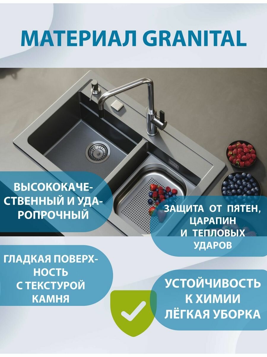 Мойка ALVEUS GRANITAL ATROX 50 CARBON - G91 в комплекте с сифоном 1132822,