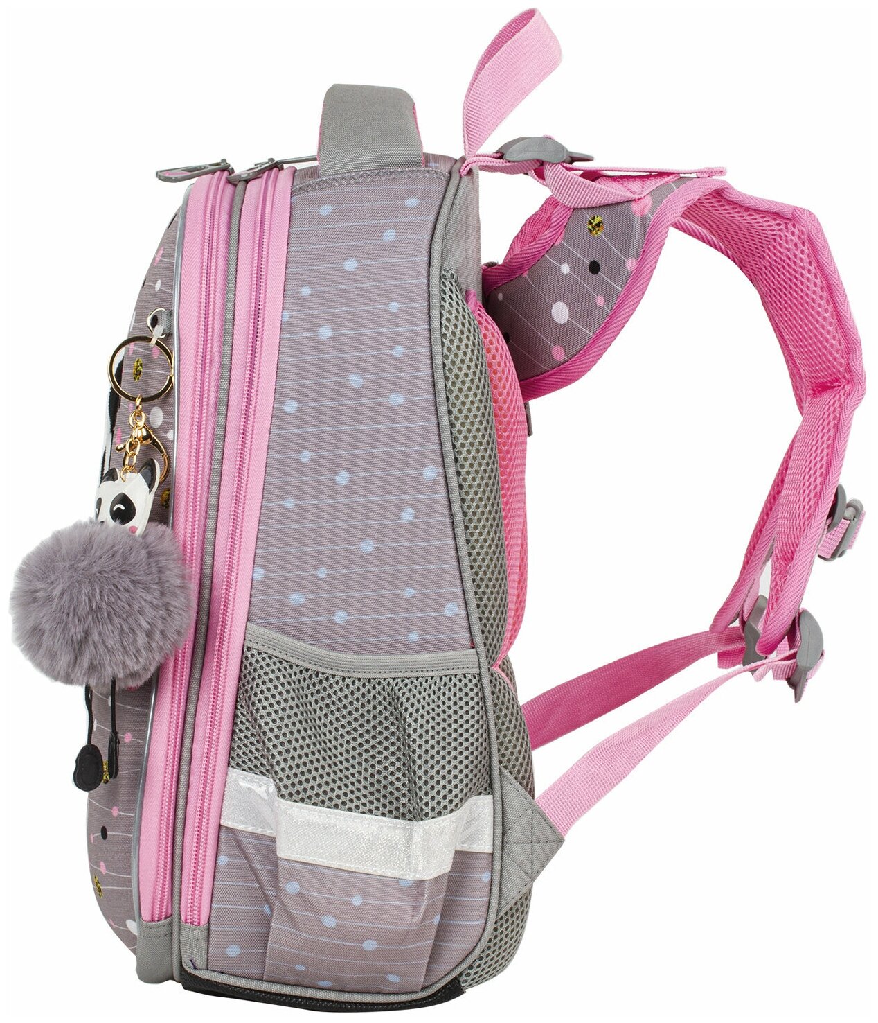 Ранец BRAUBERG Funny panda 17 л серый розовый
