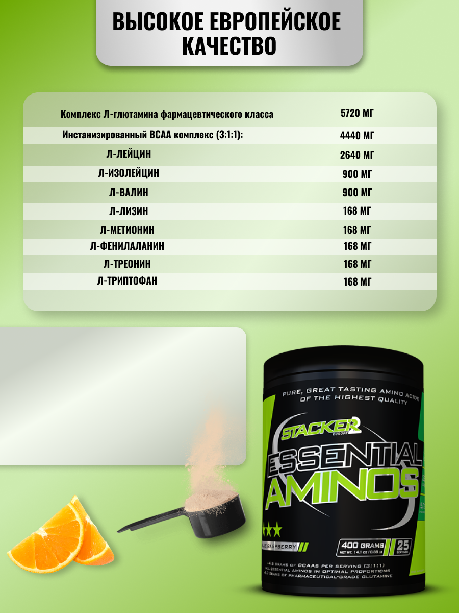 Аминокислоты с BCAA и глютамином Stacker2 Essential Aminos, апельсин, 400 гр. интересное: