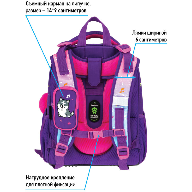 Ранец для девочки Berlingo ортопедический, Expert Husky boy 37х28х16 см, анатомическая спинка (RU07113)