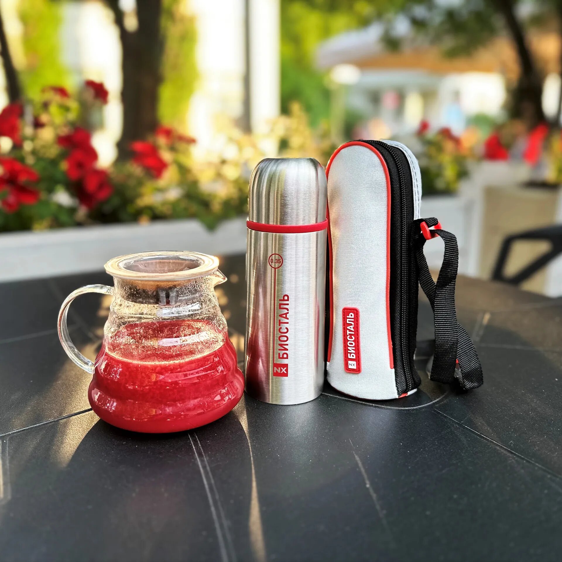 Термос Биосталь Biostal для чая и кофе, 0,5 л, в чехле, стальной NX-500B