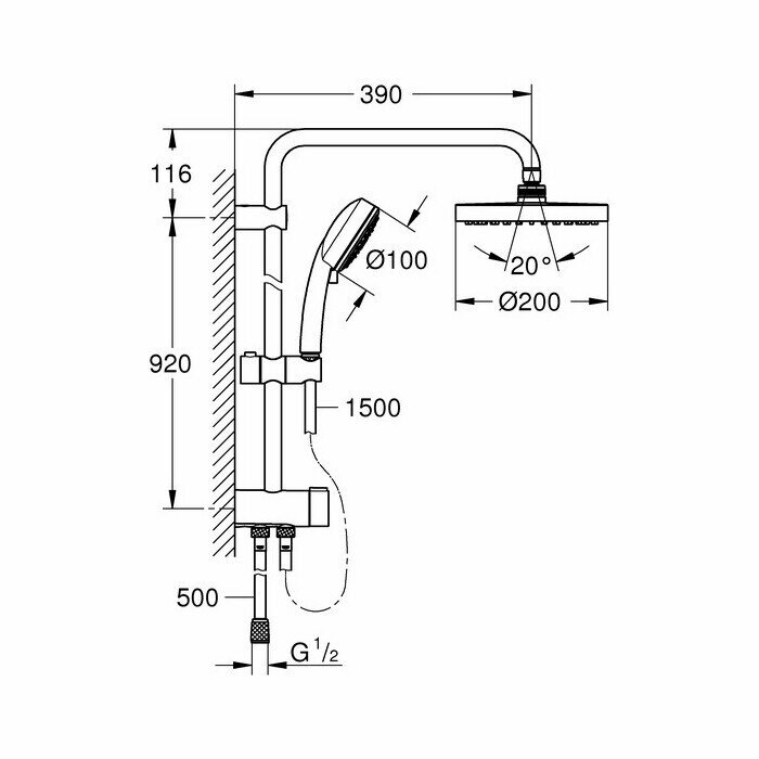 | Комплектация | горизонтальный душевой кронштейн 390 мм / переключатель на 3 положения / верхний душ Tempesta Cosmopolitan 200 (27541000) / ручной душ Tempesta Cosmopolitan 100 (27573000) / душевой шланг Relexaflex 1500 мм (28151000) / душевой шланг Relexaflex 500 мм |