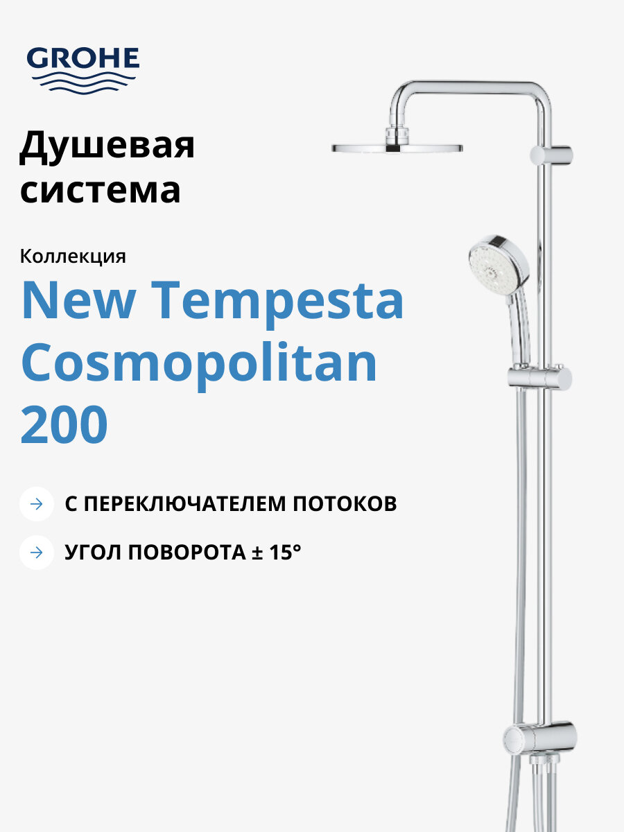 СохранитьДушевая стойка 200 мм Grohe New Tempesta Cosmopolitan System 26453001 интересное: