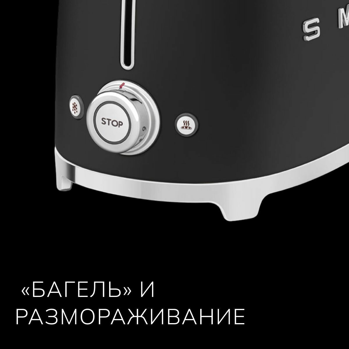 Тостер SMEG TSF01BLMEU / мощность 950 Вт / на 2 ломтика / матовый черный