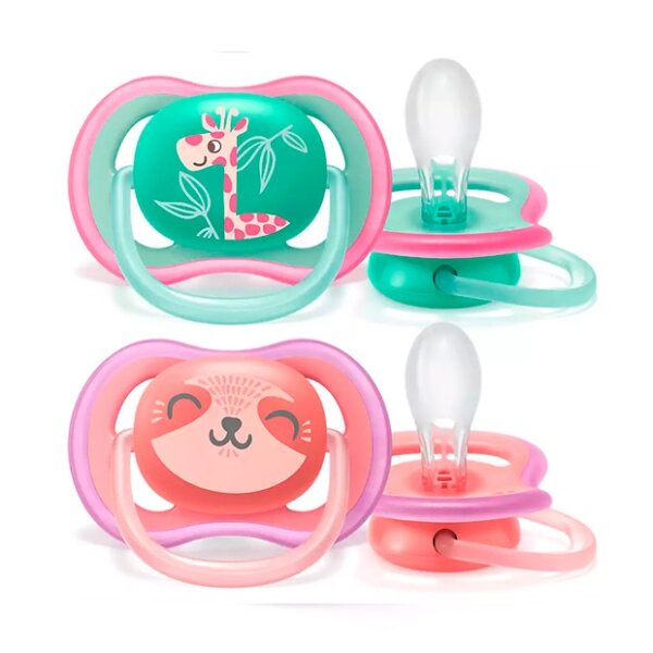 Avent Пустышка силиконовая сверхплотная Ultra Air (Жирафик/Заяц) 18+ 2шт