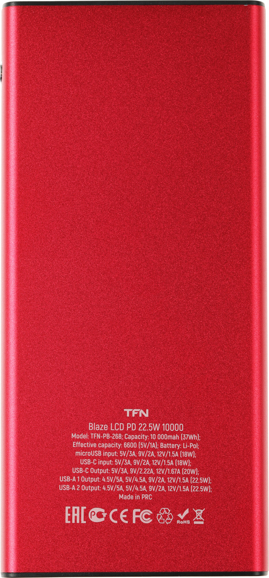 АКБ внешний TFN-PB-268-RD Blaze LCD PD красный(10000mAh /1in:Type-C /2in:USB A /20Вт.QC2.0/3.0) 0218