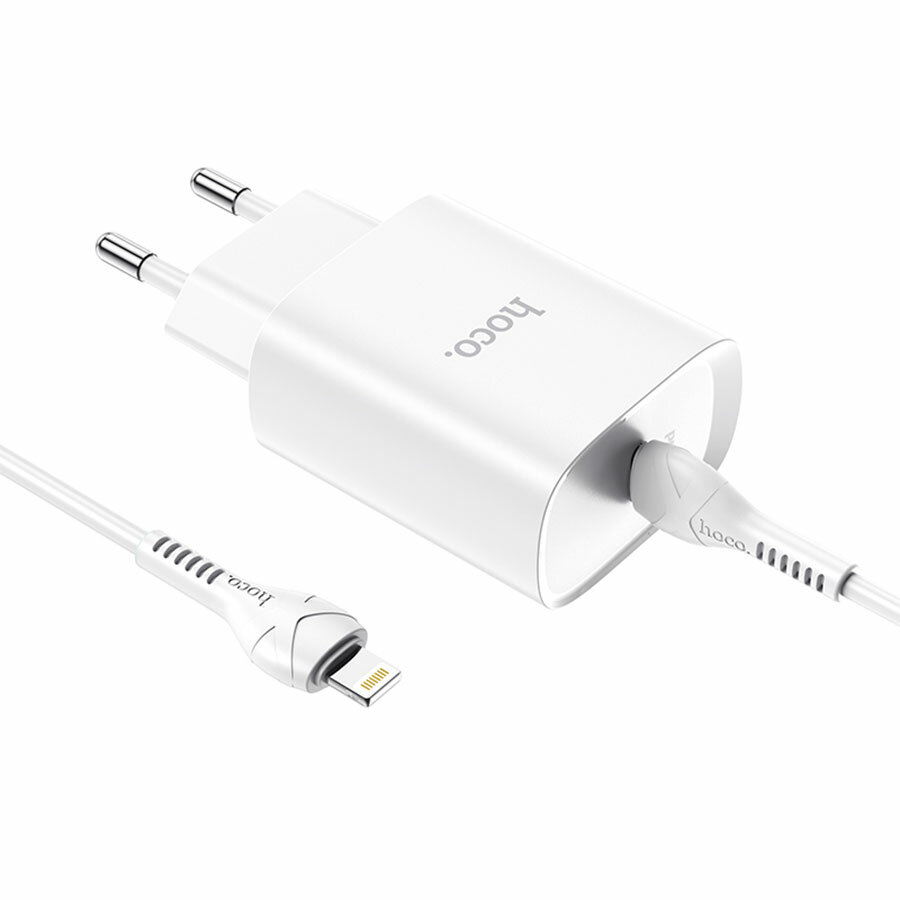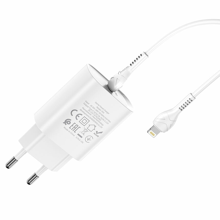 Сетевое зарядное устройство, 1 PD 20W, 3.0 QC (N14), HOCO, Type-C to Lightning, Умная зарядка, белый