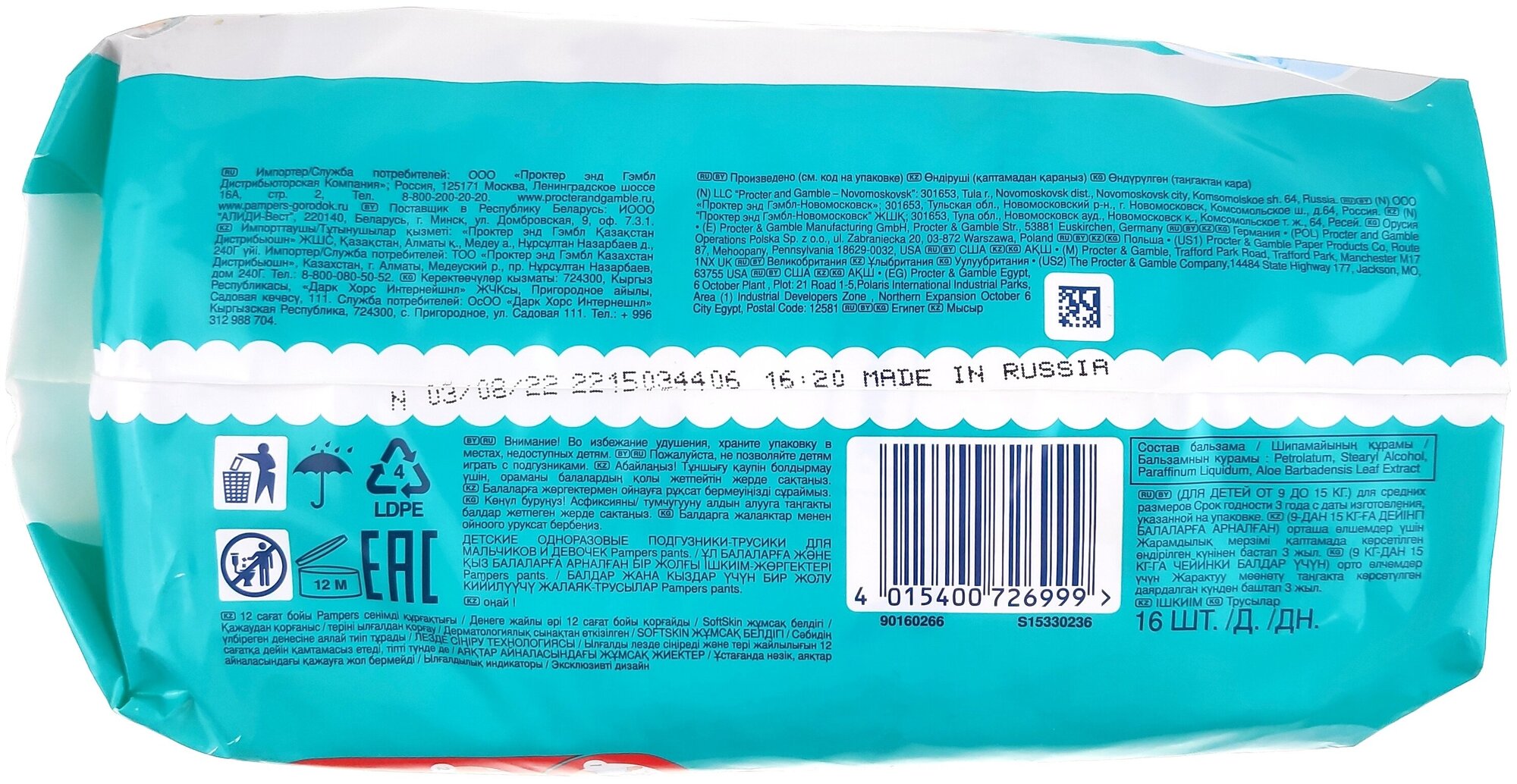 Трусики Pampers, размер: 4 (9-15кг), 16шт