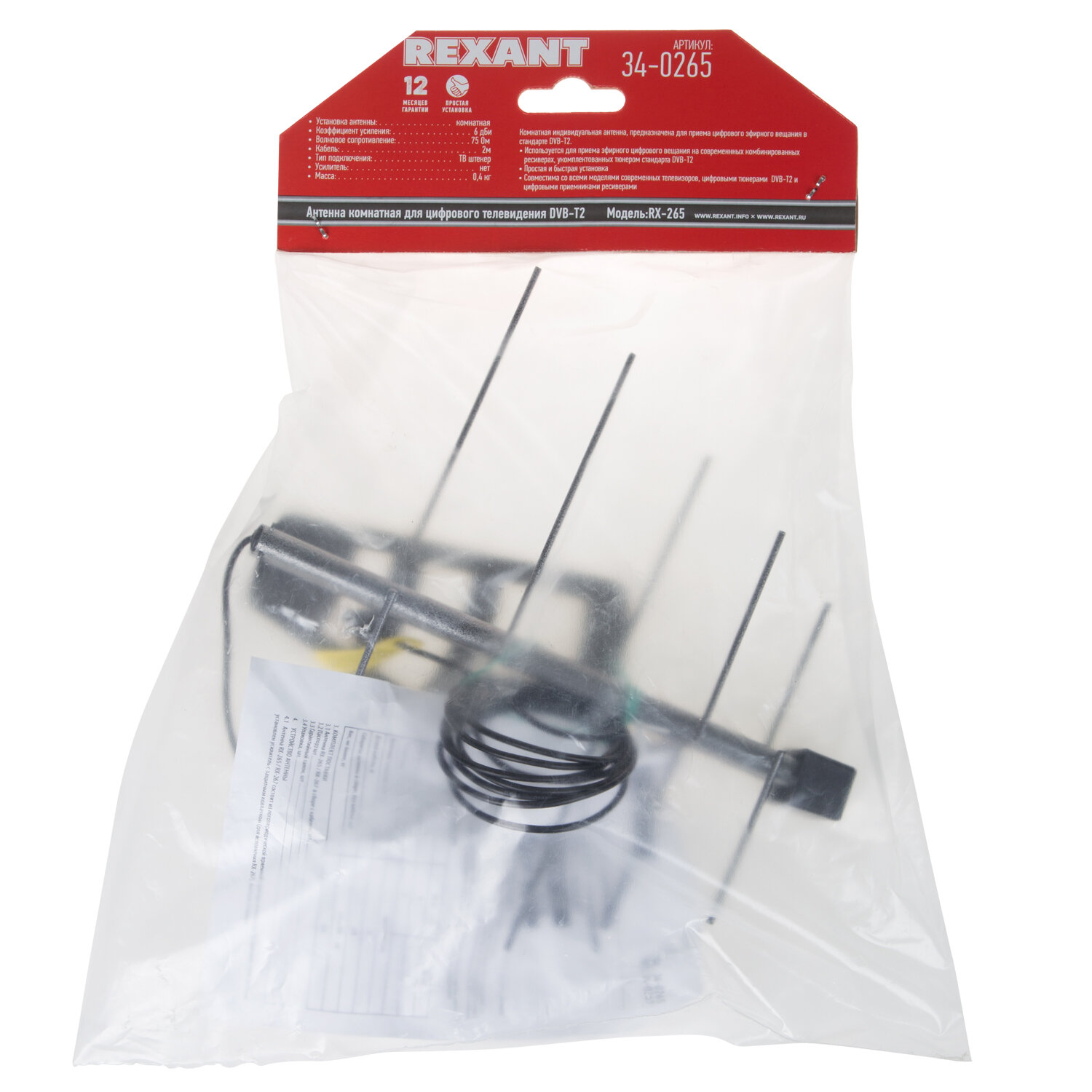 Антенна ТВ комнатная для цифрового телевидения DVB-T2 (модель RX-265) | код 34-0265 | Rexant ( 1шт. )